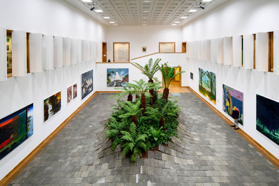 With the installation ‘Eruption’ LOLA bursts through the floor of Kunsthal KAdE. For the exhibition ‘Abrasive Paradise’ twelve contemporary artists and designers are invited to reflect upon the utopian ideal of a makeable world, within a world that turns out to be anything but makeable. In the main hall of the museum ‘Eruption’ is a floor-filling street garden that bursts out of the pavement. The presentation is completed with a selection of works by artists, such as Michael Raedecker, Armando and Sanam Khatibi, that each visualizes a paradoxical paradise.