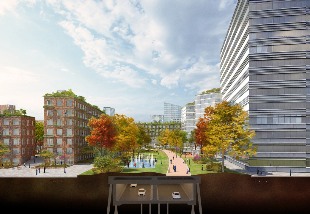 Translating that into the public realm means we invest in the new ‘grand projects’ of the 21st century: the park. In the seventies we celebrated infrastructure at the heart of our cities. In the ninety’s architecture was peaking, and now we realize we have to make our neighborhoods walkable, enjoyable and sustainable. This all reflects in the central gesture of covering the Utrechtsebaan with a new city park.