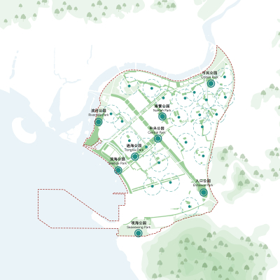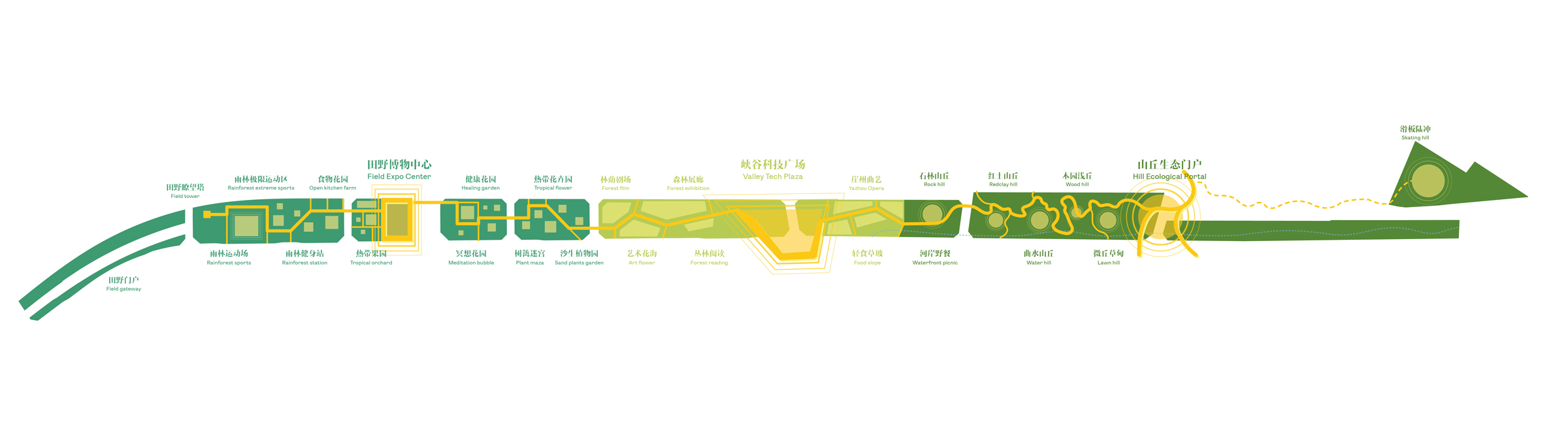 In the western segment, a field museum expo park will be built, which will allow tourists to experience nature, and serve as a display of agricultural and deep-sea technology, connected to the Nanfan scientific research core area. It is combined with a ‘cultural canopy plan’, which hosts existing traditional Yazhou cultural activities, combined with the leisure needs of modern life and the display of contemporary technology.