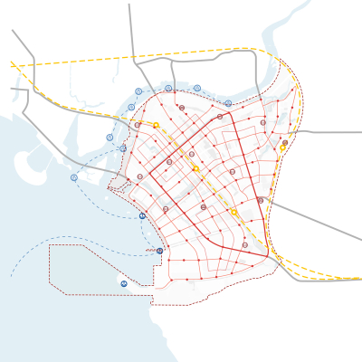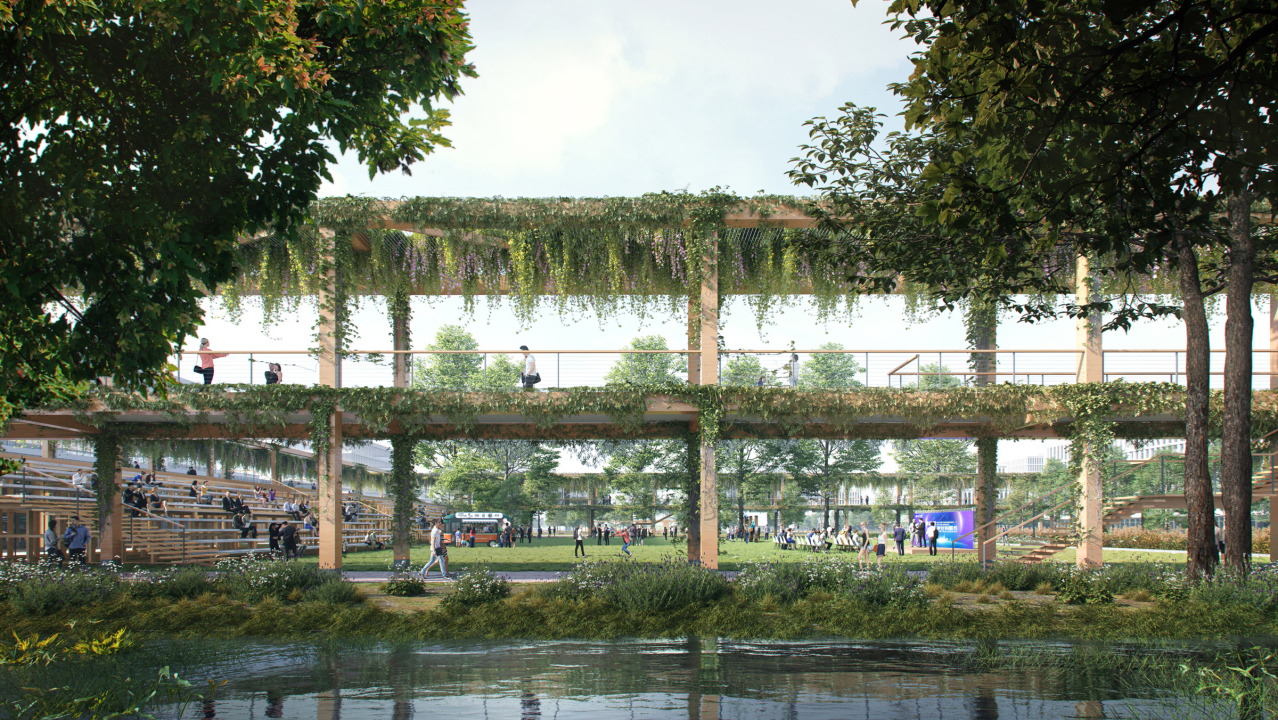 The middle segment is strongly connected to the surrounding city blocks, and will serve as the most public and visible part of the park, aiming to bring together residents, workers, and tourists. It is combined with the ‘vibrant canopy plan’, that gives space to a range of urban gardens and event areas, and crosses the main infrastructural barriers in the form of a pedestrian bridge.
