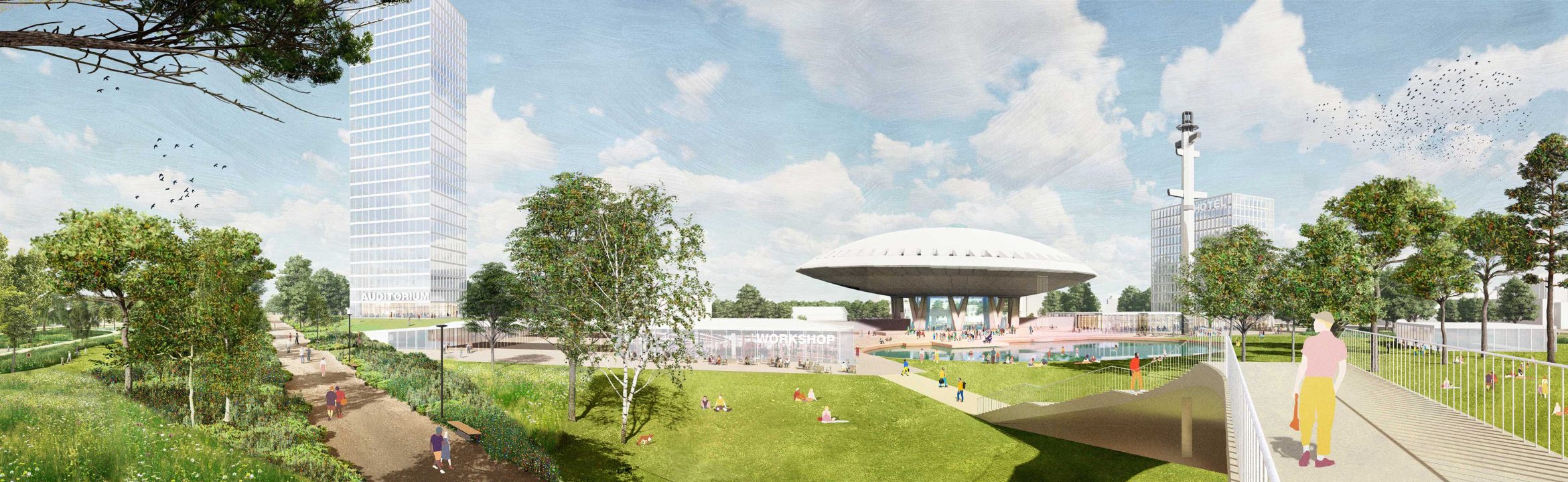 LOLA Landscape Architects designed a development framework, studying the potential transformation of the 15 hectare historical Evoluon Park in the context of its famous heritage.