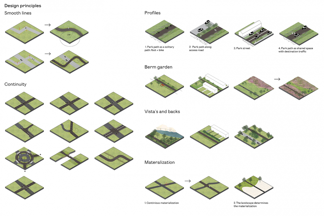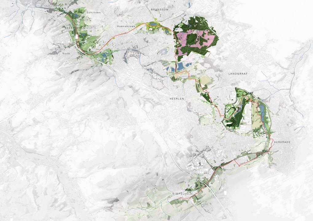 Marked by a distinctive white dotted line, the Parkstadroute weaves through and connects the villages and cities of Simpelveld, Kerkrade, Heerlen, Landgraaf, Brunssum, Hoensbroek, Nuth, Beekdaelen, and Schinnen. The concept behind the route is built upon three pillars: Flow, Experience and Botanics.