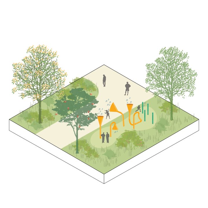 For the dense urban district of Merwede, the urban city nature area is designed as a home to a succession of diverse biotopes, rich biodiversity, and robust green structures. Wealth and diversity of species are important. We, therefore, ensure to recognize this by creating the right conditions, such as sunlight, wind, and soil quality. By taking the different biotopes into account, we allow the different biological diverse conditions and landscapes in Merwede to thrive and grow in their celestial elements.