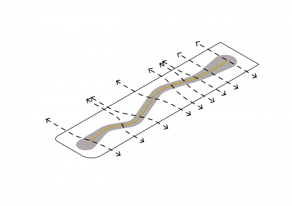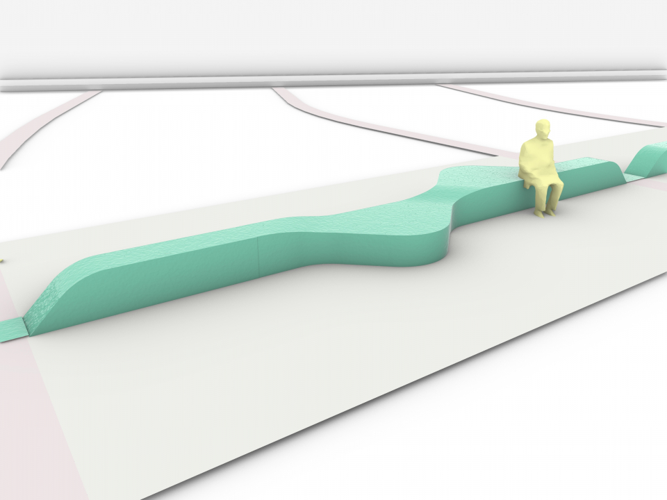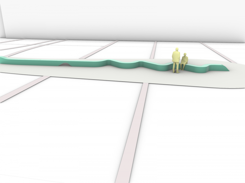 LOLA has also designed a 110-metre-long bench that runs as a backbone through the park. This sculptural work of art connects the Stadhuisplein with the Weerwater. The bench consists of nine different elements, all of which are uniquely shaped. It is possible to sit on almost all elements of this playfully winding bench, but there is also a higher part that has a gateway to walk underneath.