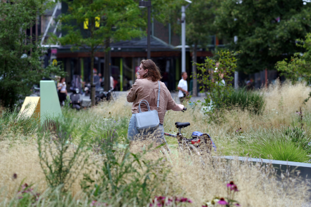 Now that the climate is changing faster than desired, it is important for cities to be able to anticipate to the effects. This means that inner cities have to provide more space for water and nature. For this reason, the city hall promenade, before in use as a market square, has been transformed into a natural city park.
