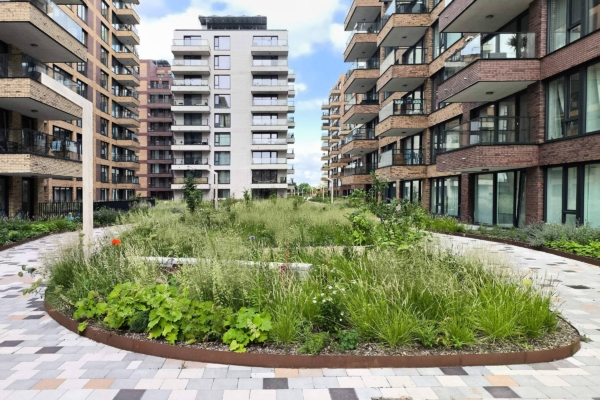 Westerpoort transforms instead of demolishes the building, in a way that the column structure, which ensures flexible use, is reused. Any material that is removed is being reused in any way possible. For example, the natural stone façade of the existing building is incorporated into the paving of the passage. Building rubble from returns as a foundation under the Parkpad and as a substrate on the nature roof, where after treatment it becomes a nurturing soil for plants. Besides the natural wooden roof of the passage, hiding places and nesting boxes for animals and insects are being integrated throughout the project. A special feature is the ecological tower of the Parkwachter pavilion with integrated nesting boxes for birds, insects and bats as the centerpiece in the garden.